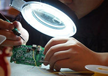 Сотрудник сервис центра исполняет работу: заменяет неработоспособную часть новой качественной частью